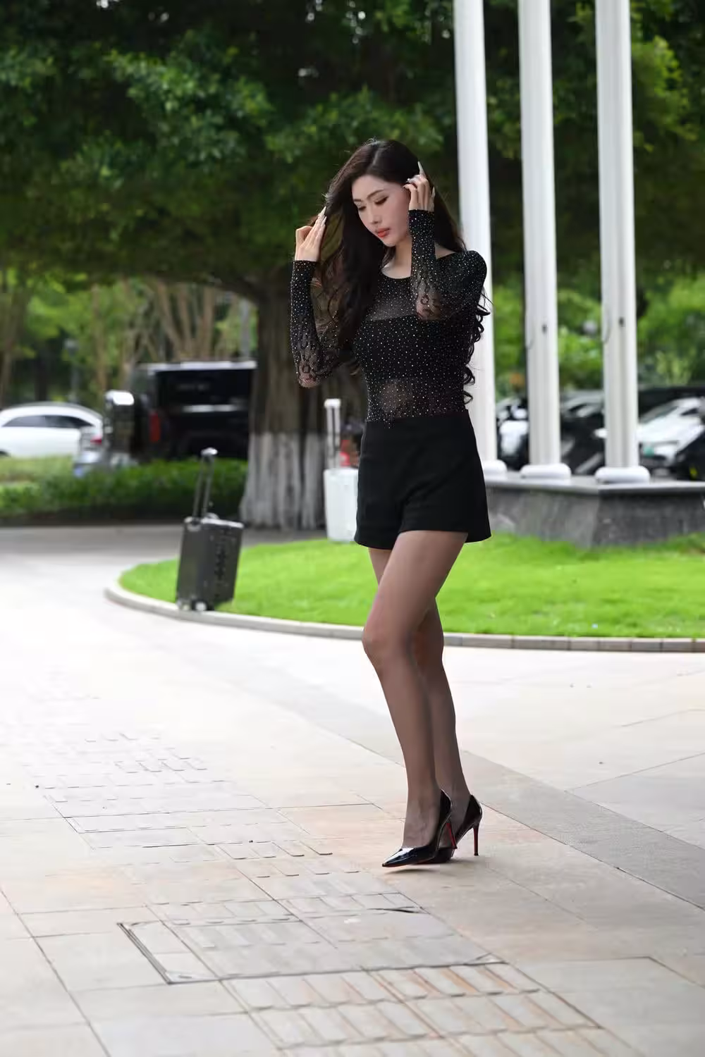 (인터넷 컬렉션 시리즈) Red Bottom Black Black High Heel Black Silk Inte Celebrity -Ye Mengyu (118p) 2025년 09월 22일